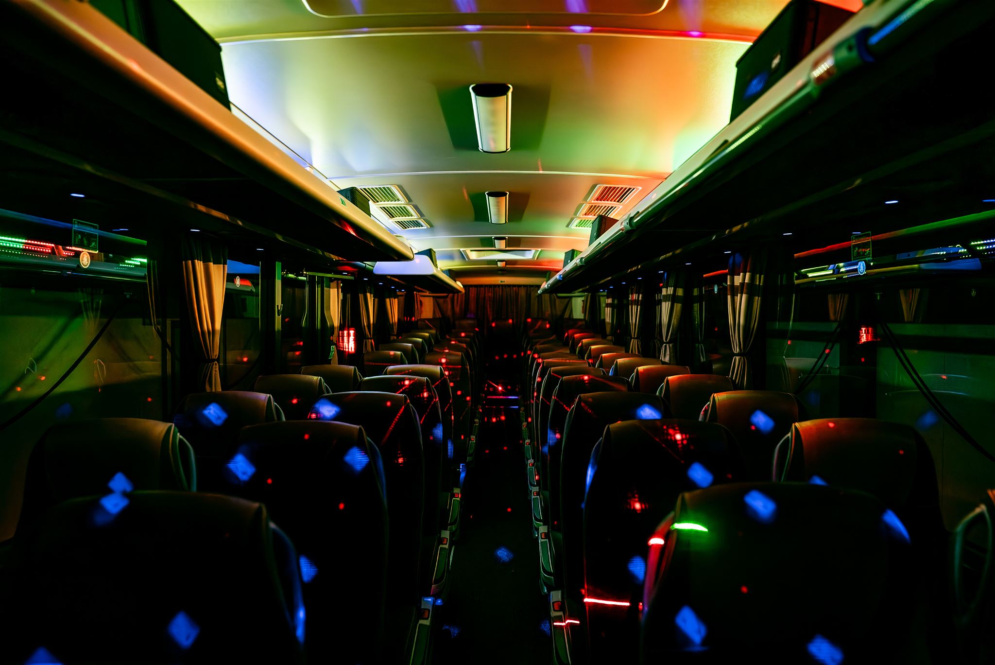Onze supergezellige partybussen zijn voorzien van sfeerverlichting en comfortabele zitplaatsen. Wil je je favoriete plaatjes draaien? Dat is geen probleem dankzij onze professionele geluidsinstallatie. Met behulp van bluetooth kun je deze eenvoudig bedienen. En dankzij onze minibar met koude dranken ontbreekt het je onderweg aan niets.